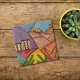 Warm colors and spicy flavor of the desert are abundant in this folk art piece called Desert Dance. With a southwestern collage design with cacti, adobe images and purple and red colors, this is a wonderful addition to your kitchen or home decor.