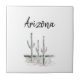 Arizona Desert Cactus ceramic tile, with a black and white design and customizable black lettering. A fun southwestern item to add to your western home decor.