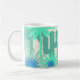 Coffee mug that feature pretty aqua and blue southwestern Cactus and Palm Tree design.