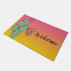 Ombre Pink and orange background has the colors of a beautiful desert sunrise, with blooming prickly pear cactus and "Welcome" text in modern script