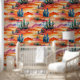 Watercolor cactus in the desert with a beautiful sunset wallpaper.