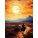 Amidst the tranquil solitude of the desert at sunset, a lone figure on horseback emerges as a silhouette against the fading light. This captivating art captures the essence of a serene ride through the vast, untouched wilderness. The bond between rider and horse, the stillness of the desert, and the warmth of the setting sun converge in this art piece, offering a moment of quiet reflection and the beauty of a journey into the horizon.