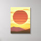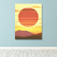 Canvas in a retro, minimalist desert sunset over hills, in shades of deep rust orange, golden yellow, and brown