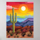 Desert Sunset with Cactus Landscape Poster