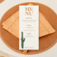 Set the stage for your desert-themed wedding reception with our Rusty Orange and Cactus Desert Themed Wedding Menu! This stunning wedding menu showcases a rustic orange color palette and charming cactus illustrations, capturing the essence of the desert landscape. The design exudes warmth and Southwestern charm, making it a perfect complement to your desert-inspired wedding decor. Each menu is professionally printed on high-quality cardstock, ensuring a polished and elegant presentation. Personalize the menu with your desired fonts, colors, and wording to create a unique and cohesive look for your wedding reception. Our Rusty Orange and Cactus Desert Themed Wedding Menu will not only guide your guests through the culinary delights of the evening but also serve as a memorable keepsake from your special day. Shop now and enhance your desert-themed wedding celebration with our Rusty Orange and Cactus Desert Themed Wedding Menu