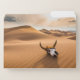 This amazing Getty Images photo features a cow skull laying in the rippled sand dunes.