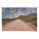 This amazing Getty Images photo features a dirt road and Saguaro National Park leading into a beautiful cloudy sunset with saguaro cactus bordering the road.