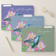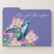 Organize your design projects, art inspiration or craft ideas in these lovely file folders decorated with hummingbirds and columbine flowers. In purple, dusty blue and sage green, these handy folders can be customized with any text for your hobby or business.
