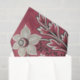 A striking collection of wildflowers and leaves on a rich light red background