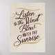 A tranquil scene where the soft sound of the wind rustling through the trees meets the warmth of a sunrise on the horizon. The image captures the peaceful moment of nature in transition, inviting the viewer to experience both the calm of the breeze and the beauty of the dawn