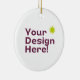 Lightweight, smooth, pure white ornament with nice sheen. Perfect size to be seen from across the room ... and to attract closer inspection! Price was great for ordering enough for the whole family! Clear, bold black design just as requested. Matches the order exactly. Just so nice!