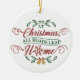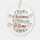 A customizable ceramic ornament with text that reads At Christmas All Roads Lead Home. You can remove the image on the front and back and replace it with one of your own.