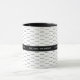 Add your name to have a cool, modern and personalized mug-of-coffee with a pattern of black names and with a blk. stripe to add your complete name