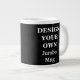 It's easy to personalize and customize this jumbo mug! Simply type your text into the box to replace the template text. You can choose the font, color and size of your text. And you can customize both sides, and all round the mug. You can even add a photo or artwork of your own! Also available in other colors, sizes and styles of mugs.