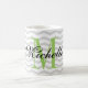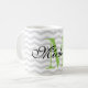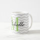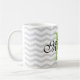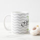 Design your own personalized monogram gray chevron pattern mug. Cute monogrammed coffee mug design with trendy grey zig zag stripes. Cute typography Birthday or wedding favor gift idea for men, women, friends and family. Stylish zigzag design with elegant script typography. Custom color for name initial letter. ie apple green Unique coffeemugs also available as large oversized cups and big to go travel mugs
