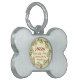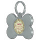 This adorable dog tag is perfect for your little girl furbaby when she goes out for walks! More and more our dogs are our babies and we want to protect them anyway possible. Many people have microchips but that's not enough. If someone finds your baby they may not take them to a vet or shelter to be scanned. For my baby I'm adding this double protection, she won't be allowed out of the house without her collar and this tag attached. Cute bone shaped dog tag with the center circular area in a soft cream accented with a swirling gold floral design of pinks and blues. The text of your choice is then added to the center, you can choose whatever color you'd like. I have my puppy dogs name and my phone number along with the words "please call my mommy".