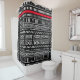 Awesome black and white Mud cloth pattern shower curtain with a red accent stripe.
