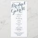 Text design printed rack card wedding programs in navy blue text or change color of text as preferred.