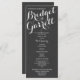 Dark Slate, chalkboard inspired text design printed rack card wedding programs with white text or change color of text as preferred.