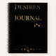 Capture your dreams & deepest desires in this beautifully designed journal. With its sleek black background & elegant celestial line, the "Desires Journal" invites you to explore your innermost thoughts & aspirations. Perfect for daily reflections, goal setting, & manifestation work. This journal will inspire you to reach for the stars & turn your dreams into reality. Let your desires take flight with this stunning & empowering journal in hand.
