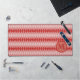 Argyle pattern shows in three shades of red background color, in alternating rows of dark, medium and light red diamonds. In lower right corner of the mat is a red circle with a darker red outline. Centered in the circle is an initial that may be personalized. Letter will show with a drop shadow.