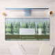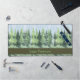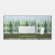 Desk Mat with green spruce trees and a digital blue striped sky. The name on the mat can be changed. Thanks to Creative Fabrica for some of the elements in the design.