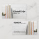 desk with stacked books business card