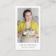 This business card features a professional photo layout with a baker, dessert caterer. The reverse side features the contact info, and social media. You can customize the text size, font, to fit your own personal style. Replace this sample place holder photo with your own portrait orientation business card.