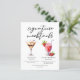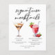 This dessert signature mocktails menu sheet features 2 cute non-alcoholic drinks and their ingredients for your party or wedding bar. A Chocolate Martini and Virgin Strawberry Daiquiri drawing above your custom event text.