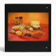 This binder is a baker's delight! All the ingredients are ready to put together for a delectable pastry. Attractively arranged are: almonds, sugar, flour, a lemon, an orange, an egg, butter, cinnamon, cardamom apricot preserves and raspberry jam. The background is a luminous orange and gold.