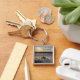 Keychain souvenir featuring a dramatic beach sunset scene behind some small sand dunes and sea oats grass looking towards a large rock jetty. A silhouette of a pelican and gull fly's over a man sitting on the jetty watching the sunset. What a great way to end the day in Destin, Florida. Looking for more prints or products? Feel free to visit my store: http://www.zazzle.com/timelessmomentsphtgy
