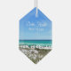This beautiful Destin Florida beach vacation keepsake Christmas ornament features the pretty blue green ocean waters of Sandestin along the coast. Pretty teal and blue umbrellas line the summer seashore in front of the sea grass. Lovely white cursive script for my favorite seaside city along the emerald coast. Customize with your trip year for an annual commemorative present.