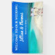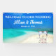 This Blue-Sky Destination Beach Wedding Reception Hanging Banner, is designed with a beautiful turquoise colored water backdrop, and Wedding Ceremony Arbour on a white sandy beach. To personalize, simply insert the Bride & Groom's Names and Wedding Date into our easy template, replacing the sample text. Enjoy!