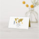 This design features a boarding pass theme. It showcases a gold map of the world along with two airplanes making a heart shape as they travel around the world. This destination themed wedding design is set out like a boarding pass with the date of the wedding personalized in the squares. The reverse side showcases the brides and grooms names along with boarding pass design and personalized wedding date. A romantic destination design with an elegant touch. Ideal for a destination wedding no matter where in the world. The perfect all season travel wedding place card design. Matching wedding invitations and other stationery items are also available. Easy to personalize with your details. Hand write your guest names and table number in the space provided.