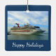 Change the words "Happy Holidays" on this hanging ornament, if desired. On it, a ship that was once called Destiny now shines as a sunshine class ship. Shown here sailing from Port Canaveral, she's on her way to sunny destinations in the Caribbean.