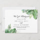 This destination tropical green calligraphy elopement announcement has a beautiful simple design. The design features hand-painted watercolor green palm and banana leaves neatly arranged into beautiful bouquets.