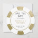 Let your friends and family know the date of your upcoming wedding. This fun save the date card in the design of a poker chip, will be a big hit with your friends and family. Add your details for a destination wedding in Vegas or to another casino style venue. In faux gold and white.