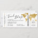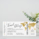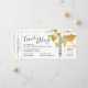 Change in Date announcement for a destination wedding that looks like a boarding pass plane ticket with an elegant world map design in faux gold foil travel theme design. All text and background colors are editable so you can create your own design using this template for a unique boarding pass which was designed with a destination wedding or travel theme wedding or vow renewal celebration in mind. Visit the Paper Grape Destinations Zazzle Designer collection for coordinating items.