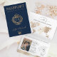 Modern and Elegant World Map Invitation Wedding Destination, like passport with gold crest with monogram, Italy.