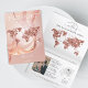 Modern and Elegant World Map Invitation Wedding Destination, like passport with rose gold glitter world map