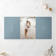 Modern simple minimalist elegant typography trendy dusty blue all in one trifold budget summer beach destination wedding invitation template with 2 photos, online rsvp, and details with scanning QR codes to website featuring a chic trendy white calligraphy script and transparent photo overlay. ++++++++++++ Easy to personalize with one or two custom photos (you can upload the same photo on both sides) and your guest information! The invitation is suitable for romantic elegance stylish weddings.