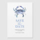 These custom save the date magnets feature a watercolor crab in shades of blue. The words "Save the Date" are typeset in a complimentary color over a crisp white background. Use the template fields to type your personalized information. A charming choice for a destination wedding. To see more from this wedding theme visit www.zazzle.com/dotellabelle