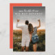 If you're engaged and planning a destination wedding, this is the save the date for you. For a fun and playful couple - with a bit of a classic and elegant side too - this one photo vertical save the date sets the tone for your big day getaway. With simple white text that reads "save the date for our big day getaway," this card also includes ample space for the couple's names, the dates, the location and any other pertinent information like a wedding website. The back is a vivid coral color with a speckled pattern, but the color can be changed by clicking customize then clicking the plus sign on background color. Coordinating wedding invitations and accessories with the big day getaway theme are also available.