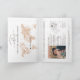 Modern and Elegant World Map Invitation Wedding Destination, like passport. Peachy blush pink watercolor world map and compass monogram crest on the front page