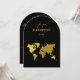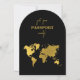 A black and gold destination wedding passport design with gold world map, airplane and travel elements. This design is ideal for all Spring, Summer, Fall and Winter destination weddings. An elegant black and gold wedding travel design with passport layout, world map and custom couple photo. A modern destination wedding invitation design with elegant elements. Matching wedding stationery items and other wedding invite formats are also available.