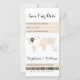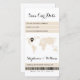 Save The Date Card with electronic boarding pass style is a unique and stylish way to share your upcoming nuptials with loved ones. This design features a trendy cream beige color scheme along with a world map and a destination pin that you can customize and move to highlight your wedding location. With its eye-catching design and customizable features, this card is sure to make a lasting impression on your guests and get them excited for the destination wedding of your dreams. Order now and start spreading the news!
