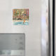 A beautiful watercolor and ink design created by the brilliant Melissa Wang, brought to you by World Art Group. In the foreground of this piece we can see a small sailboat just offshore a small beach populated by a number of items, people and palm trees. This scene could take place in somewhat a holy or religious city as the background and top tier is decorated with crucifixes or crosses towering over the foreground of the artwork. Perhaps this angle was an intentional perspective by the artist to signify the religious significance of this city.