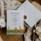 This DIY PRINTABLE wedding invitation template features a watercolor St Augustine city skyline. Use this template to edit the fonts, font color, and background color to match your event needs.