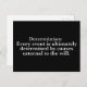The scientist or philosopher definition of determinism is that every event is ultimately determined by causes external to the will. It is the determinist belief that free will is an illusion, because everything is predetermined. This philosophical postcard shows the doctrine that every cause is itself the effect of a prior cause. An interesting philosophy.