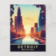Sunset at Detroit, Michigan, City Skyline view from the Detroit river. Travel postcard.